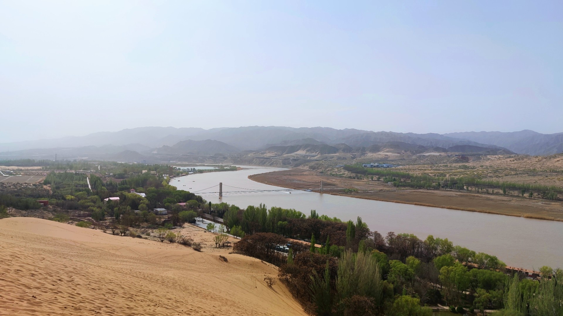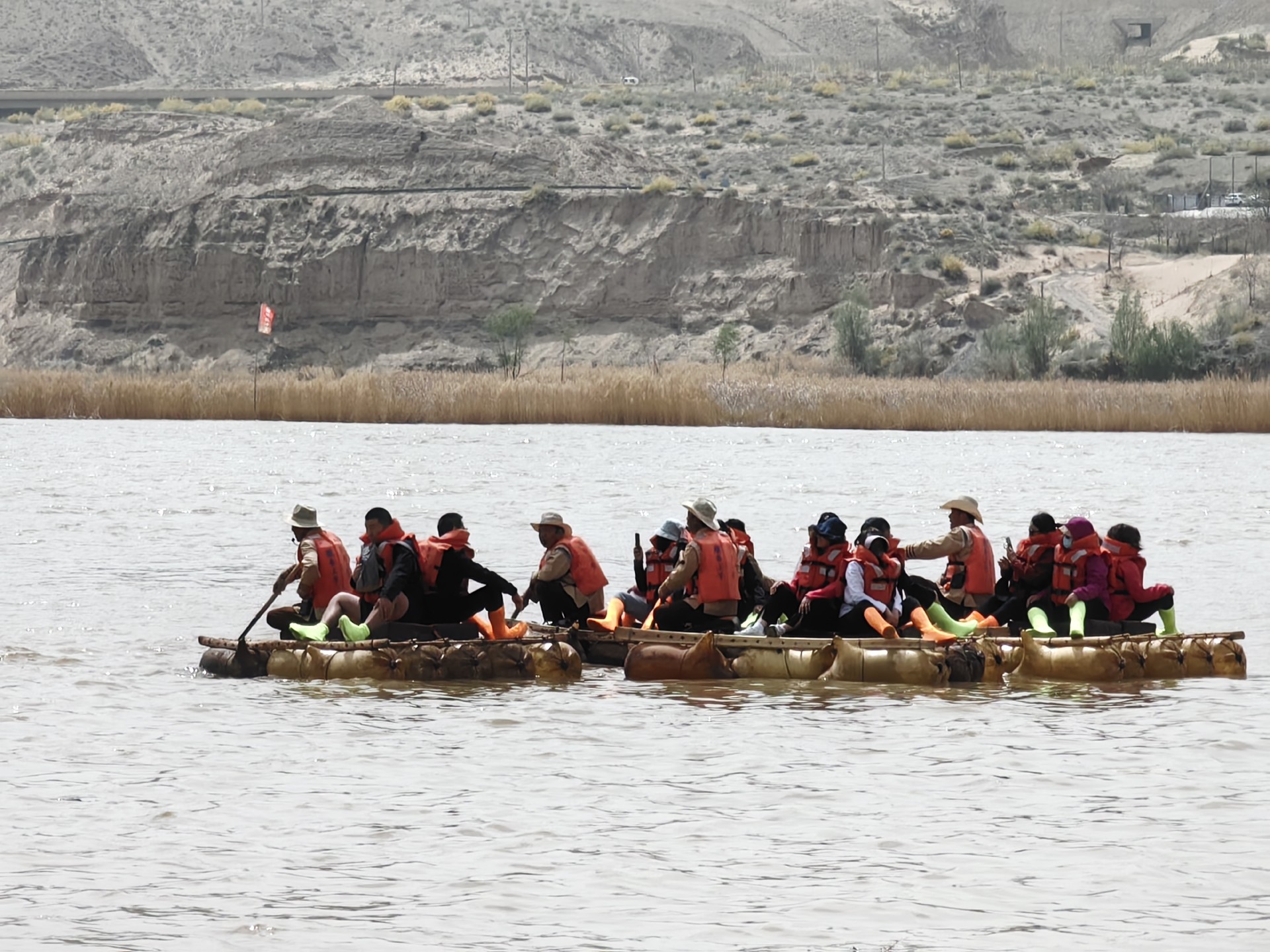 第四天去沙坡頭體驗(yàn)一下王維詩中大漠孤煙直,長河落日圓的壯觀,感受沙漠的浩瀚與雄偉壯闊,坐著羊皮筏子暢游了母親河-黃河。